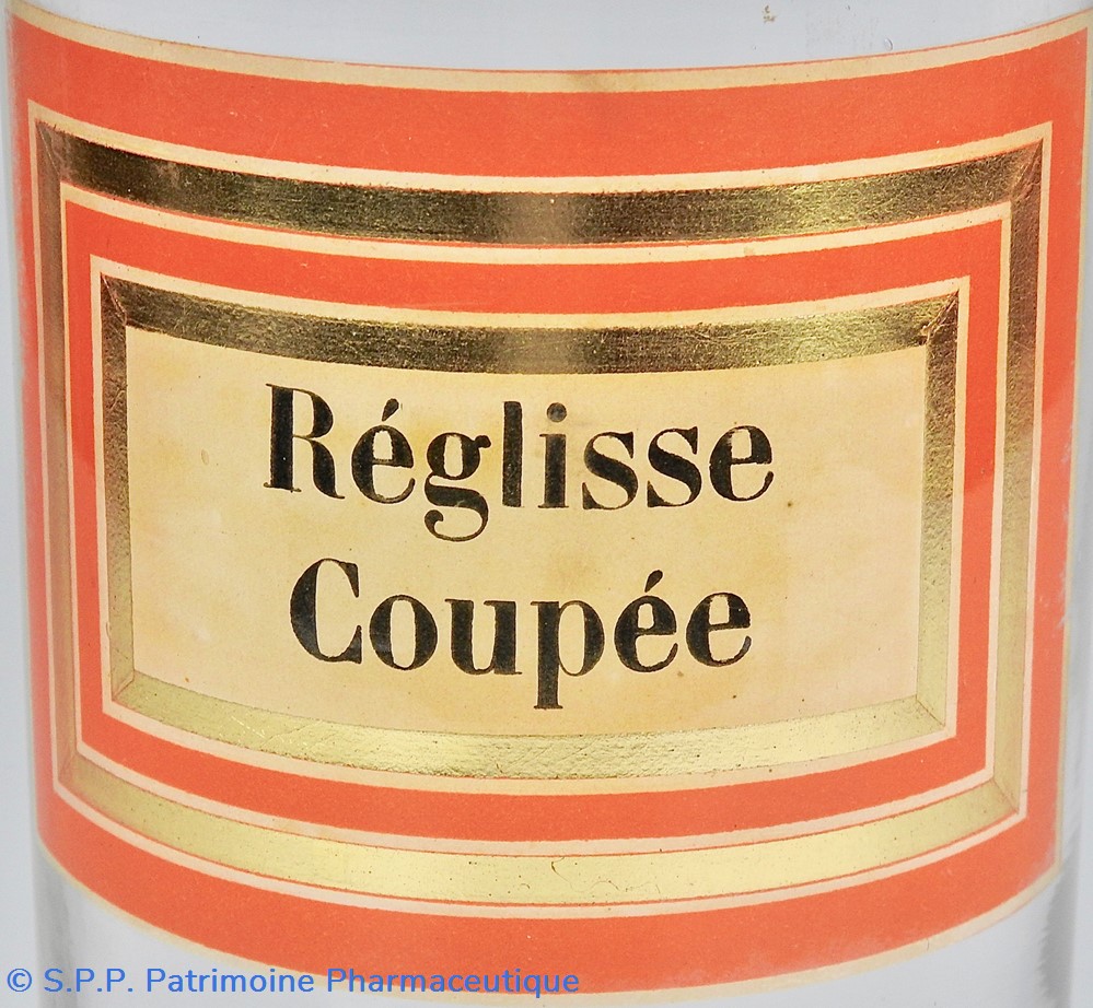 La réglisse coupée ou glabre, Glycyrrhiza glabra, grande herbacée vivace de la famille des Légumineuses (Leguminosae), croît naturellement dans les régions méridionales. Le rhizome appelé racine contient de nombreux flavonoides et des saponosides triterpéniques dont le principal composé est la glycyrrhizine dont l'aglycone ou partie organique non glucidique, l'acide glycyrrhétinique ou enoloxone possède des propriétés anti-inflammatoires. La réglisse est inscrite à la pharmacopée européenne, monographies 01/2012, 2378 pour l'extrait sec de réglisse) et 08/2019, 0277 corrigé 10.0 pour la racine de réglisse.