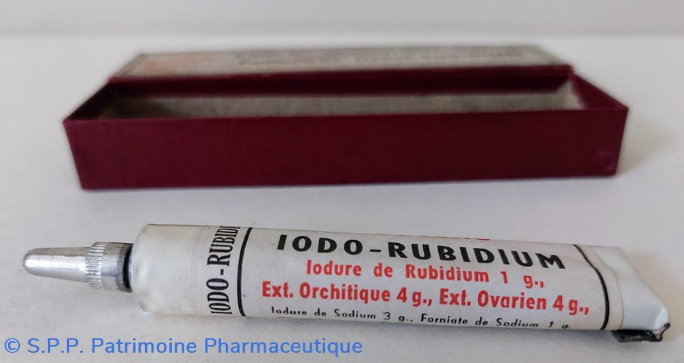Iodure de Rubidium 1g. Ext. Orchitique 4 g Ext.ovarien 4 g. Iodure de Sodium 3 g. Forniate de Sodium 1g.pour 100 g.