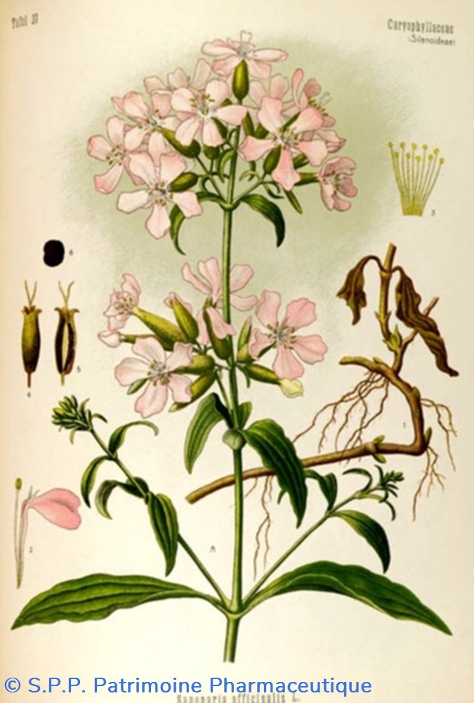 Sont utilisés en thérapeutique : Suc de Saponaire à partir des feuilles de saponaire. Utilisé comme dépuratif . Dose : 100 grammes. Tisane de Saponaire : 10 grammes de feuilles ou de racines dans 1 litre d’eau et infusez. Extrait de saponaire : on le prépare selon le Codex par lixiviation avec la racine de Saponaire. Dose : 1 à 5 grammes. Manuel de Matière Médicale de Thérapeutique et de Pharmacie par A. Bouchardat