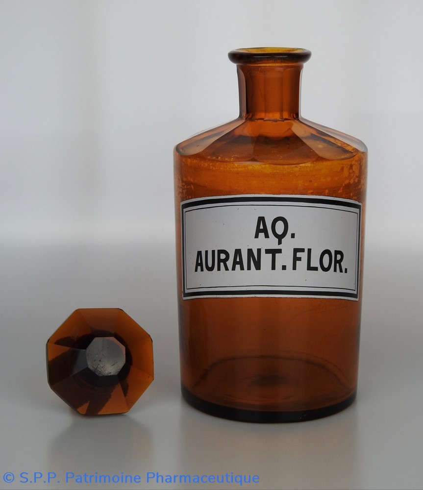 Fleurs d’oranger : On emploie celles de l’oranger doux et celle de l’oranger amer. Ces dernières sont préférées, parce qu’elles ont une odeur plus suave. Les fleurs d’oranger contiennent une huile essentielle appelée néroli, une matière amère jaune, de la gomme, de l’albumine, de l’acétate de chaux, de l’acide acétique libre, et du soufre ; l’eau et l’alcool dissolvent les principes actifs de ces fleurs. On dessèche à l’étuve les pétales d’oranger, et on les serre dans des flacons bien bouchés. On emploie ces pétales en infusion à la dose d’un gros pour un litre d’eau. Cette boisson est à la fois tonique et antispasmodique ; elle peut être utile pour combattre les débilités d’estomac et les affections nerveuses. C’est une boisson très agréable. Mais c’est particulièrement l’eau distillée de fleurs d’oranger qui est employée tous les jours comme antispasmodique, pour combattre une foule d’affections nerveuses ; ce qui est certain, c’est que cette eau est un aromate très agréable et qui entre dans ce but dans beaucoup de potions ? Voici comme on la prépare : prenez fleurs d’oranger fraichement cueillies 1à livres, eau commune q.s. Placez les fleurs, sans les tasser, sur un diaphragme percé, disposé dans la partie supérieure d’une cucurbite dans laquelle vous aurez versé préalablement la quantité d’eau nécessaire ; montez l’appareil distillatoire ; distillez à la vapeur, et recevez le liquide condensé dans un récipient florentin, à l’effet d’isoler l’huile essentielle ; continuez la distillation jusqu’à ce que vous ayez obtenu en eau distillée 20 livres. On le connaît sous le nom d’eau distillée de Naphe.Cette eau, préparée d’après le Codex, prend le nom d’eau de fleurs d’oranger double. Sio on retirait une livre d’eau pour une livre de fleurs, on aurait l’eau de fleurs d’oranger quadruple. L’acide acétique que contient l’eau de fleurs d’oranger passe à la distillation, surtout à la fin de l’opération. M. Boullay, pour éviter la présence de cet acide, qui est très dangereux lorsqu’on doit transporter l’eau de fleurs d’oranger dans des estagnons de cuivre, avait proposé de mélanger aux fleurs deux gros de magnésie par livre.Le pharmacien devra autant que possible préparer chez lui son eau de fleurs d’oranger ; lorsqu’il ne peut se procurer ces fleurs, il peut les faire venir de loin, en les faisnt mélanger, après les avoir réduites en pâte, avec le quart de leur poids de sel marin. Avec une partie d’eau distillée de fleur d’oranger et 2 parties de sucre très blanc on obtient le sirop de fleur d’oranger. Eléments de Matère Médicale et de Pharmacie. A. Bouchardat 1839