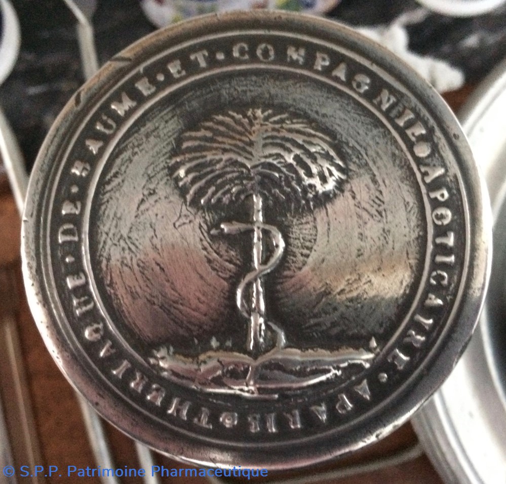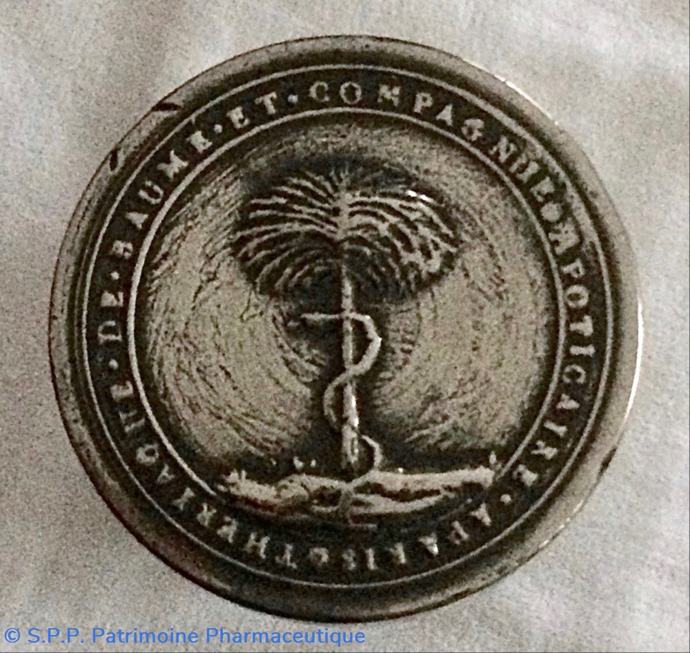 Mention sur le couvercle : "Thériaque # de # Baume # et # Compagnie # Apoticaire # AParis"