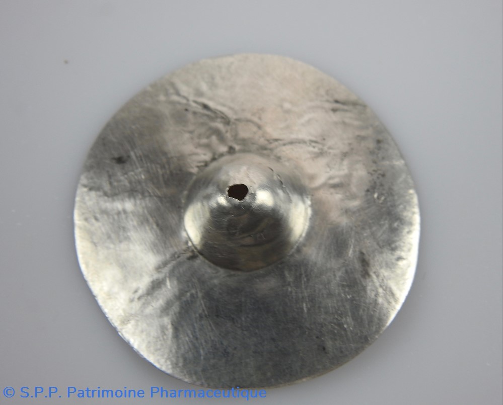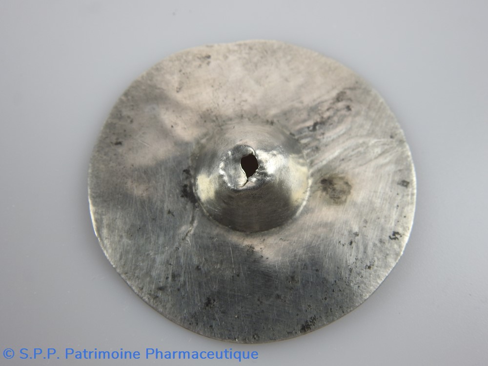 Couvercle vissé avec la représentation des trois règnes qui composent les remèdes : végétal, animal et minéral.