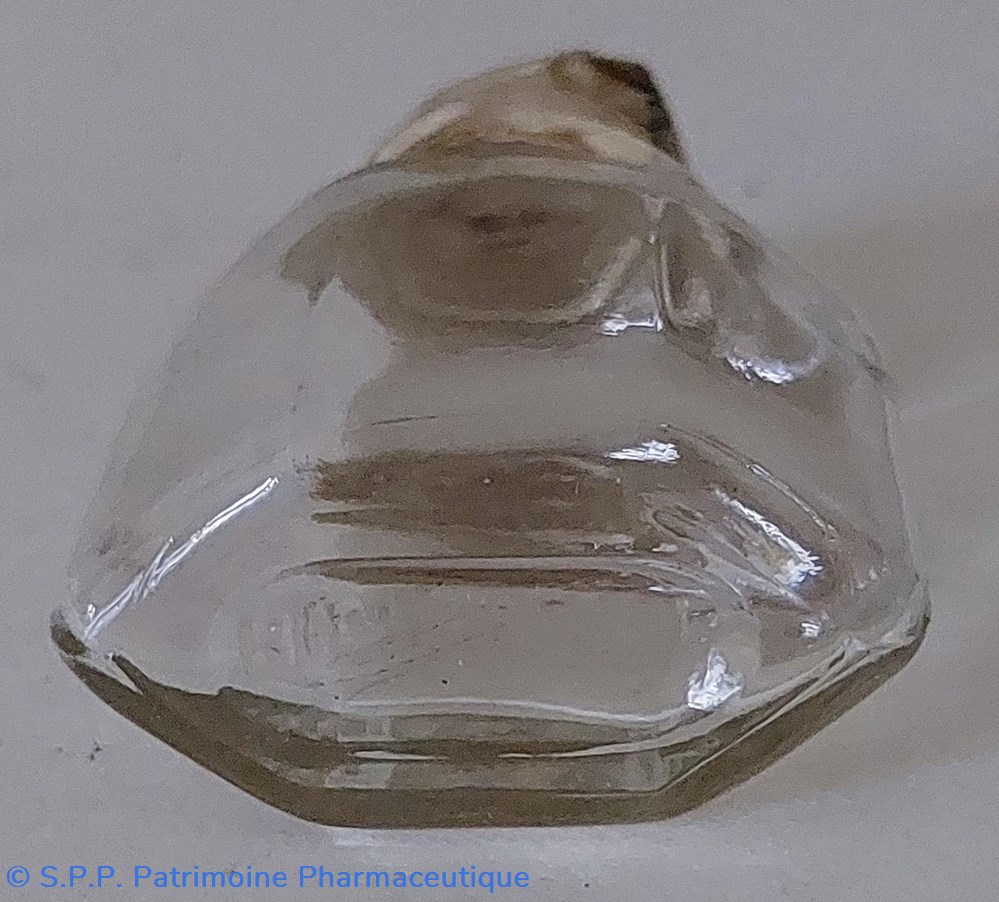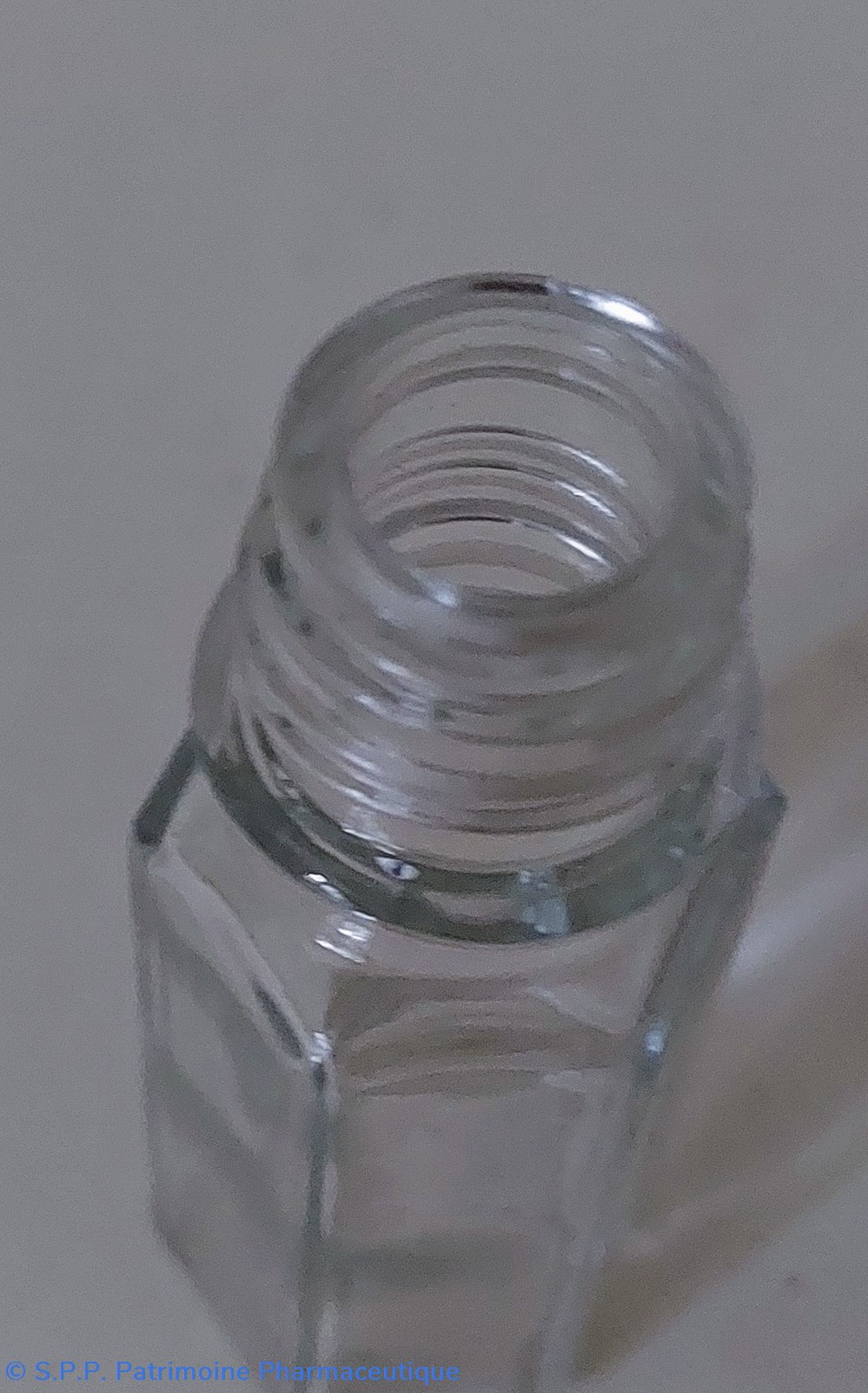 Flacon en verre incolore hauteur 7.5 cm Base hexagonale 2. 5 cm