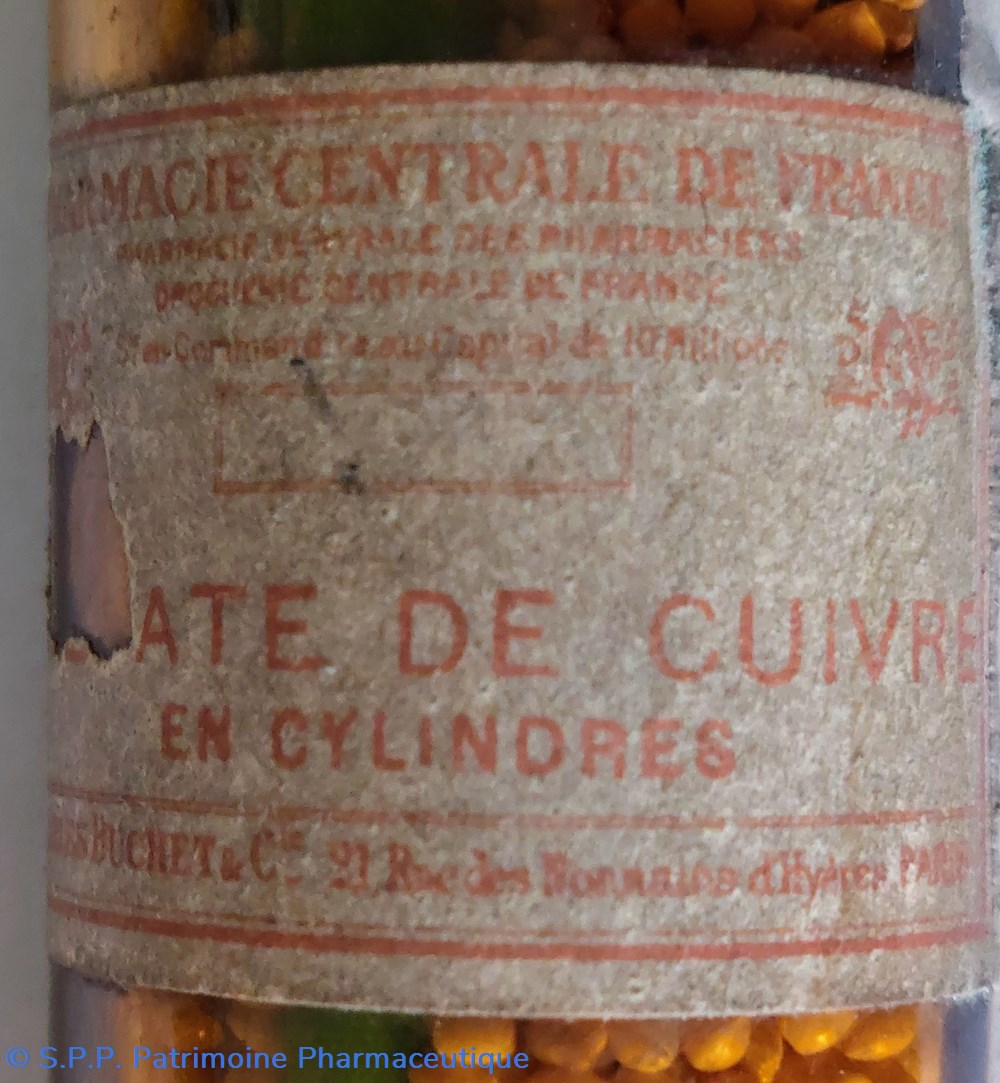 Étiquette "Pharmacie Centrale de France Paris" Désignation incomplète