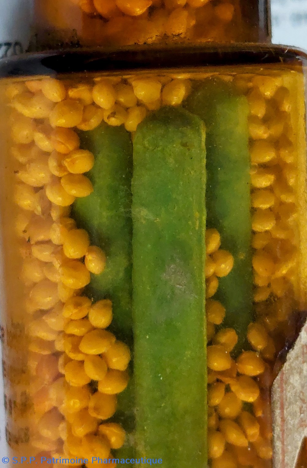 Le contenu est d'environ 6 à 8 bâtonnets ( cylindres ?) qui semblent être protégés de frottement par des petites graines.??