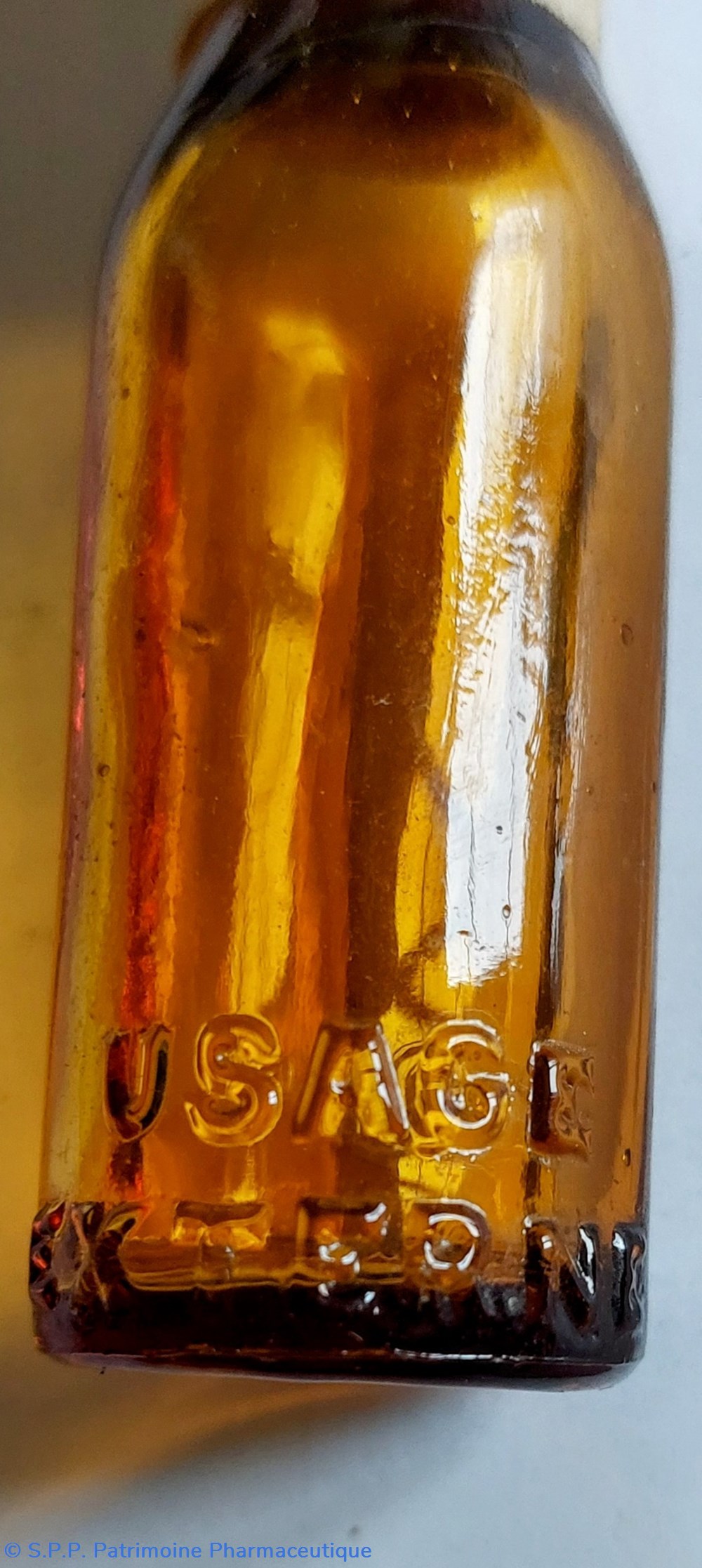 Flacon gravé à sa base " Usage Externe" et dessous " LW 15"