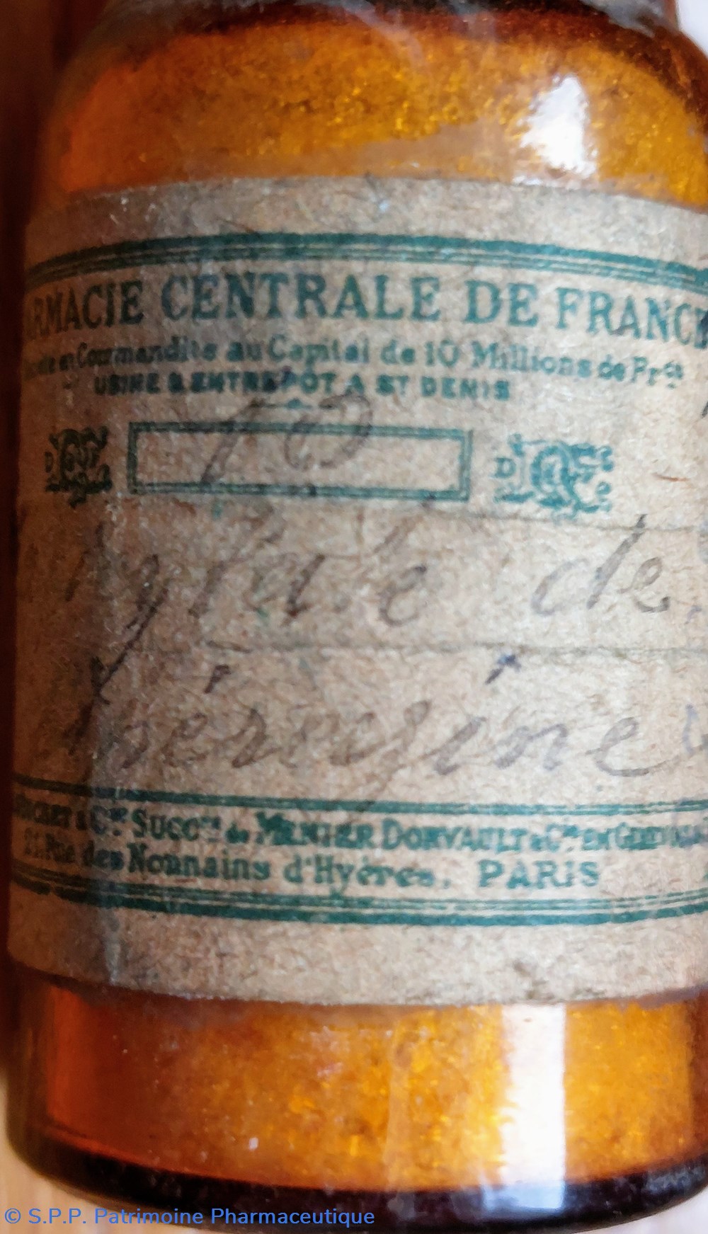 Sous la bouteille étiquette de la Pharmacie DUBUC