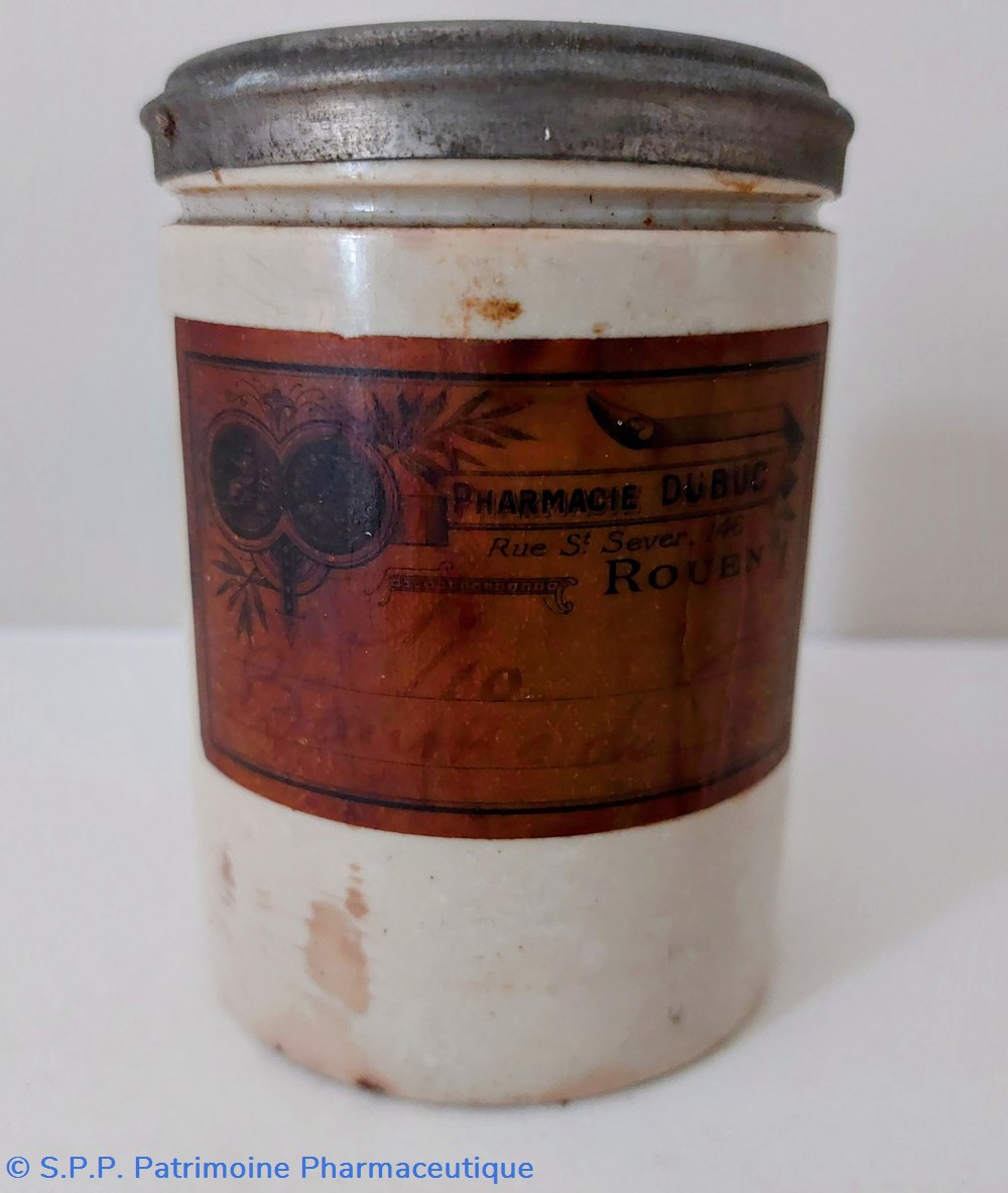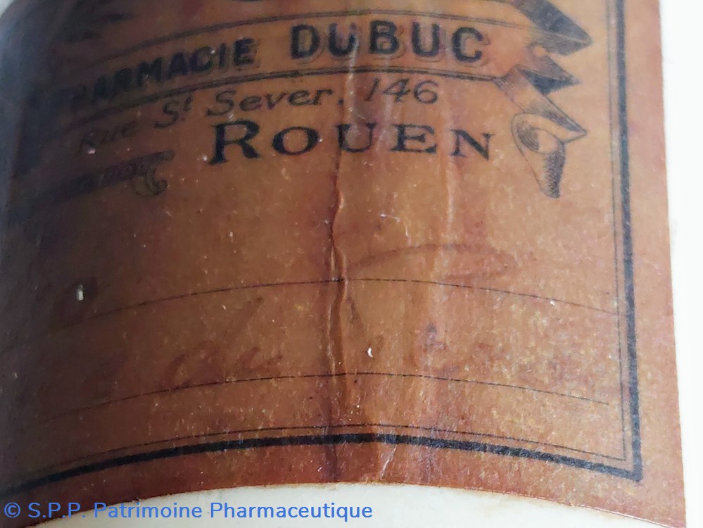 Étiquette Pharmacie DUBUC à Rouen peu lisible " Baume du...?"