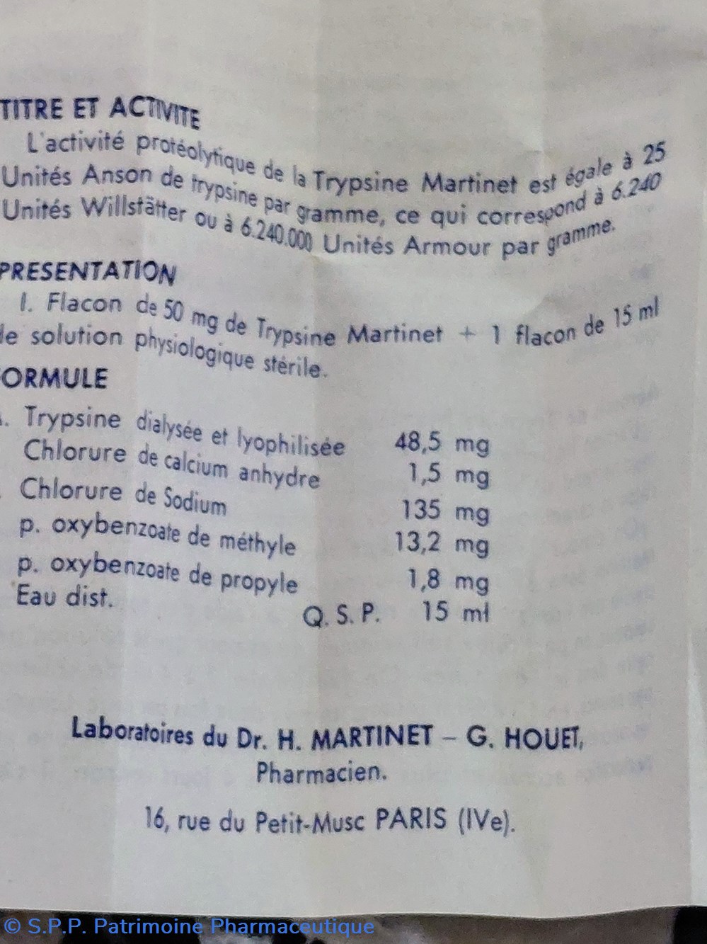 TRYPSINE cristallisée stabilisée Laboratoires du Dr H. MARTINET