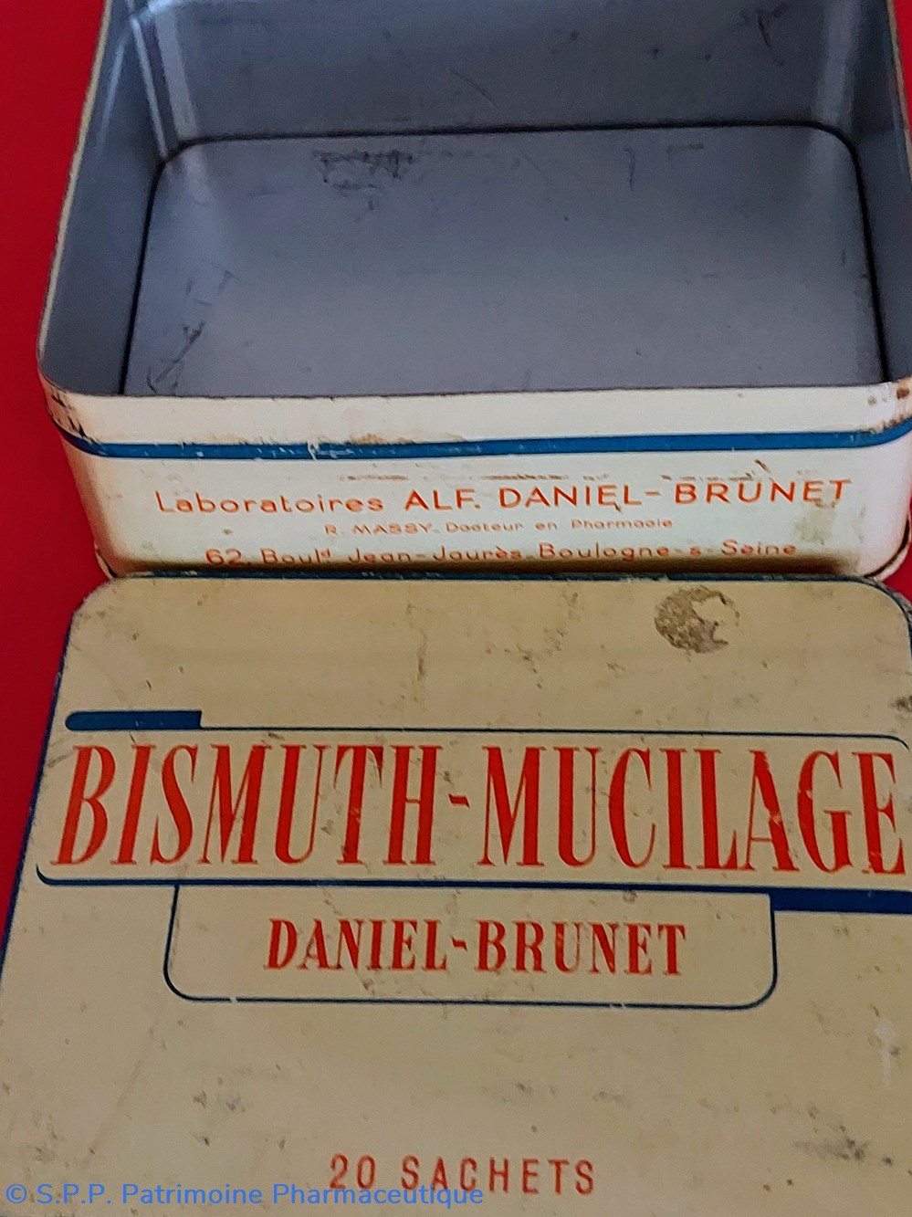 Coffret métallique vide ayant contenu 20 Sachets de BISMUTH - MUCILAGE