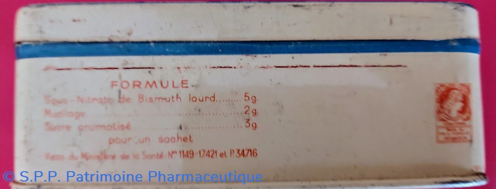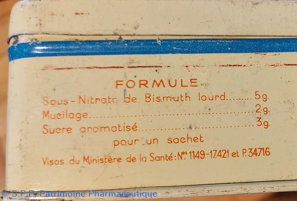 Formule : Sous - nitrate de bismuth lourd Mucilage et sucre aromatisé.