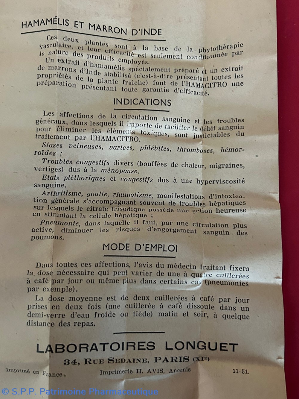 Laboratoires LONGUET A. Longuet Pharmacien34 rue Sedaine Paris XIème