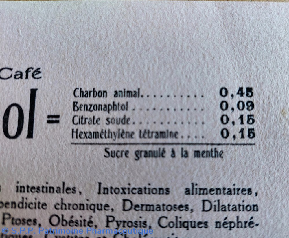 Composition Charbon animal- Benzonaphtol- Citrate de Soude- Héxaméthylène Tétramine
