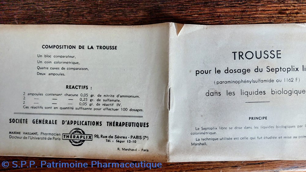 Trousse pour le dosage du Septoplix libre. ( Paraminophenylsulfamide ou 1162F dans les liquides biologiques.