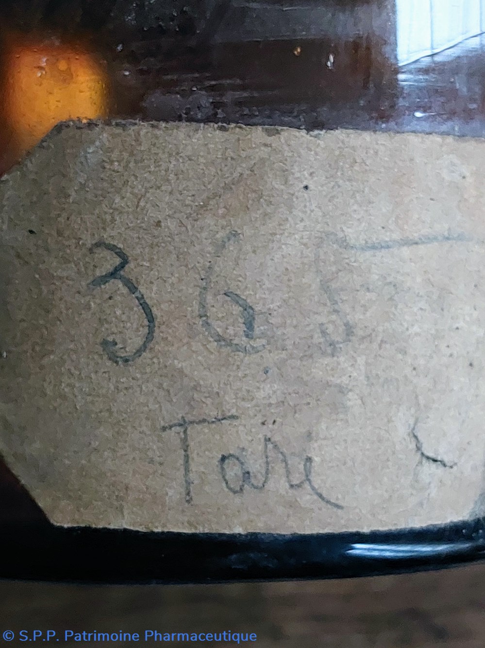 Étiquette manuscrite mentionnant une formule