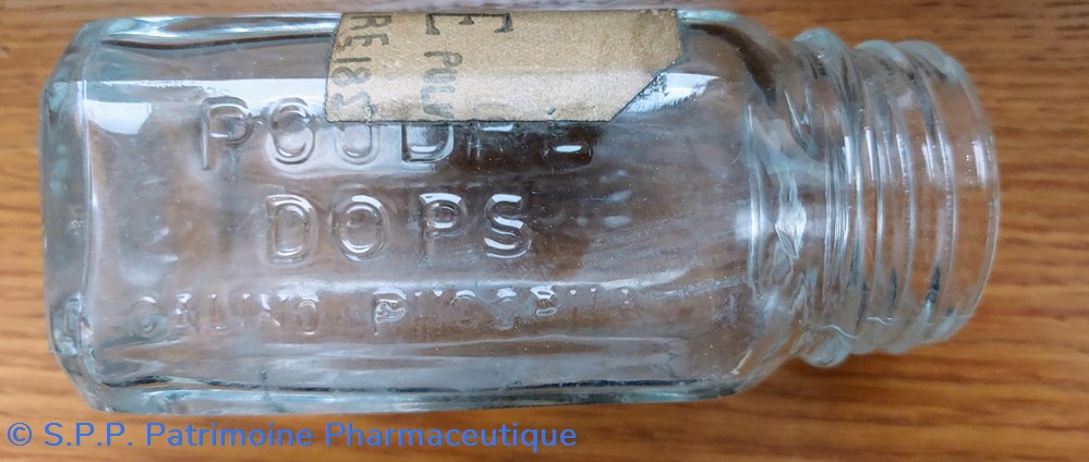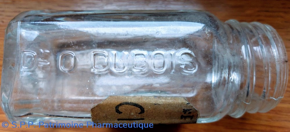 Flacon gravé "POUDRE DOPS Alcalino phosphatee" " Dr O. Dubois"