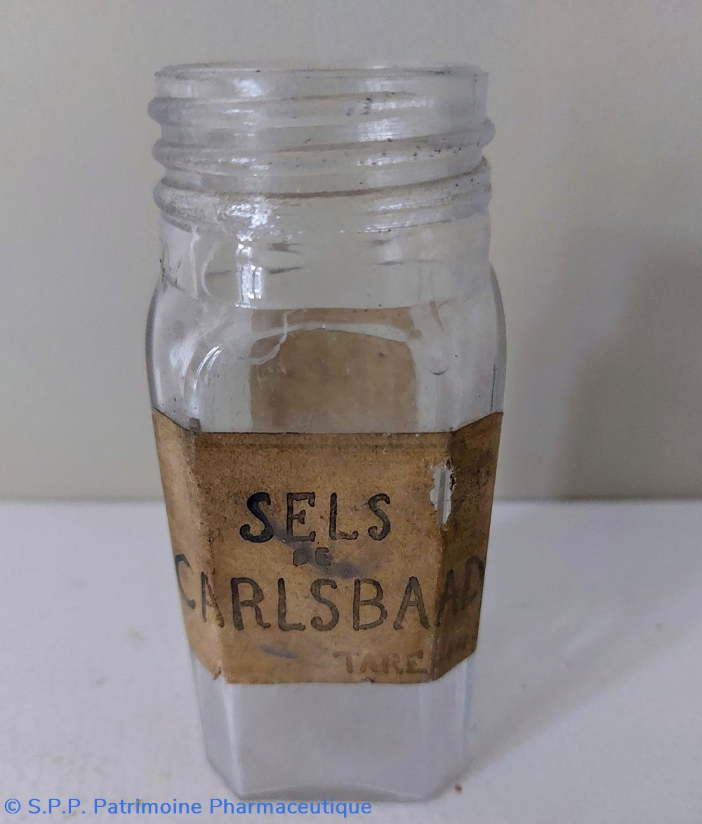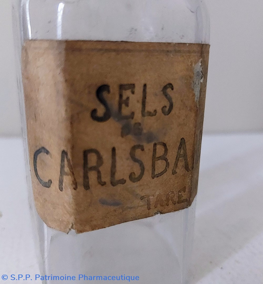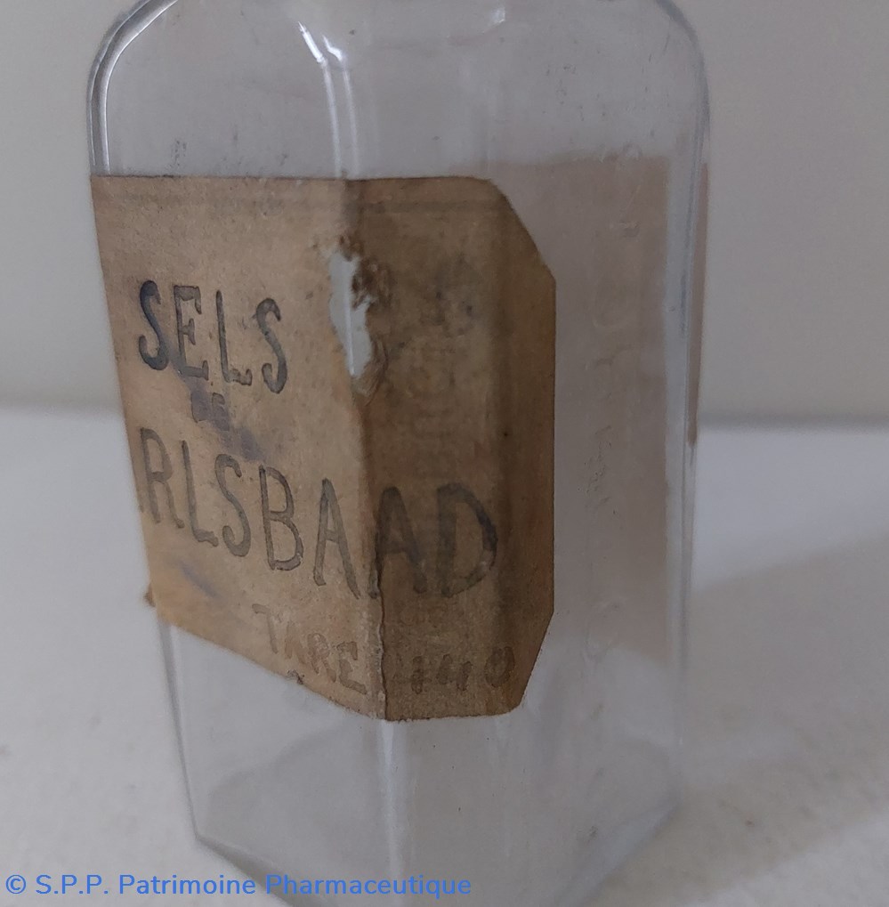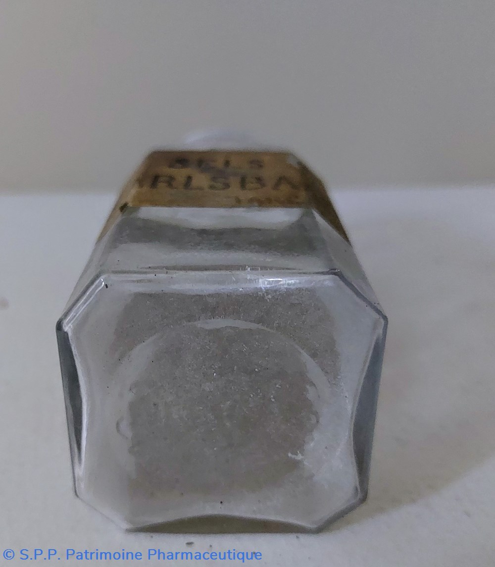 Flacon portant une étiquette manuscrite Sels de CARLSBAAD.