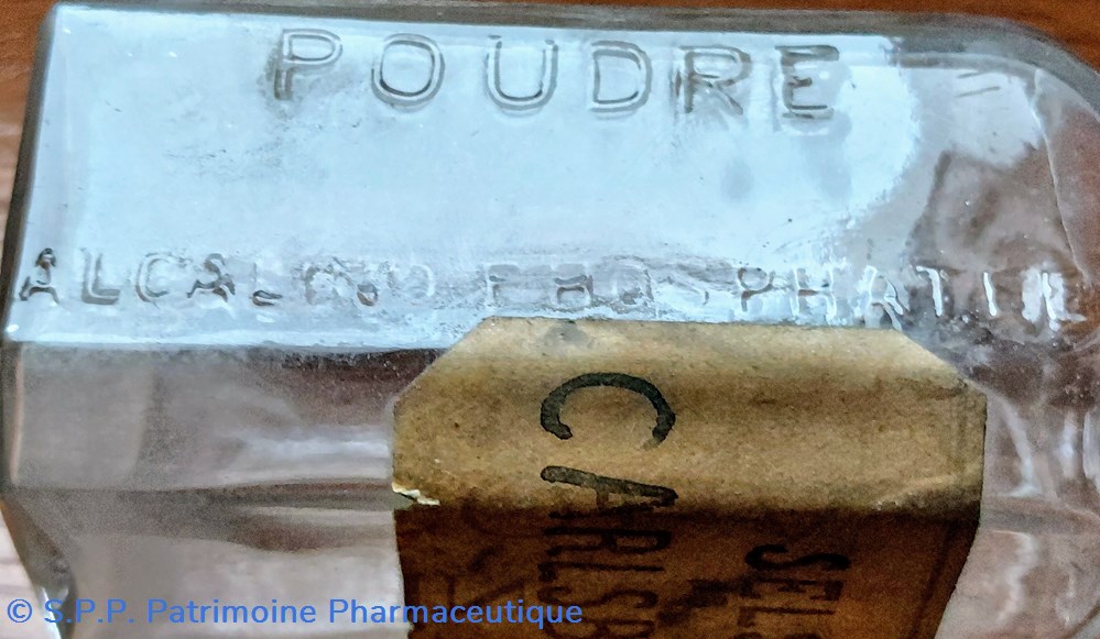 Flacon gravé " Poudre Alcalino - Phosphatée. Dr O. Dubois