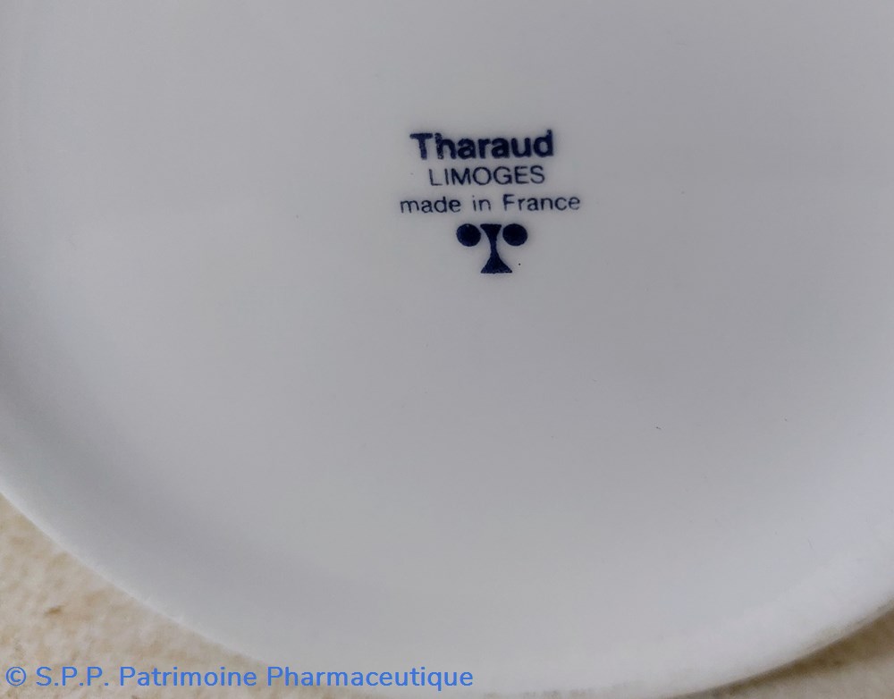 Ce modèle de pot fabriqué par THARAUD LIMOGES à été diffusé par différents acteurs de la Pharmacie ( Laboratoires et Pharmaciens)