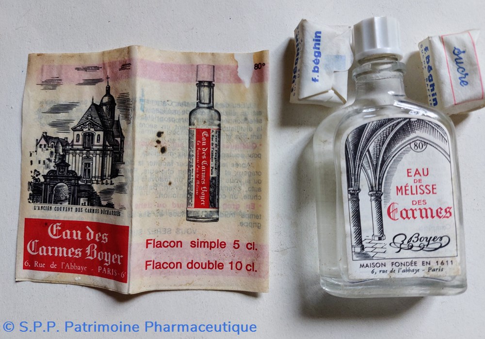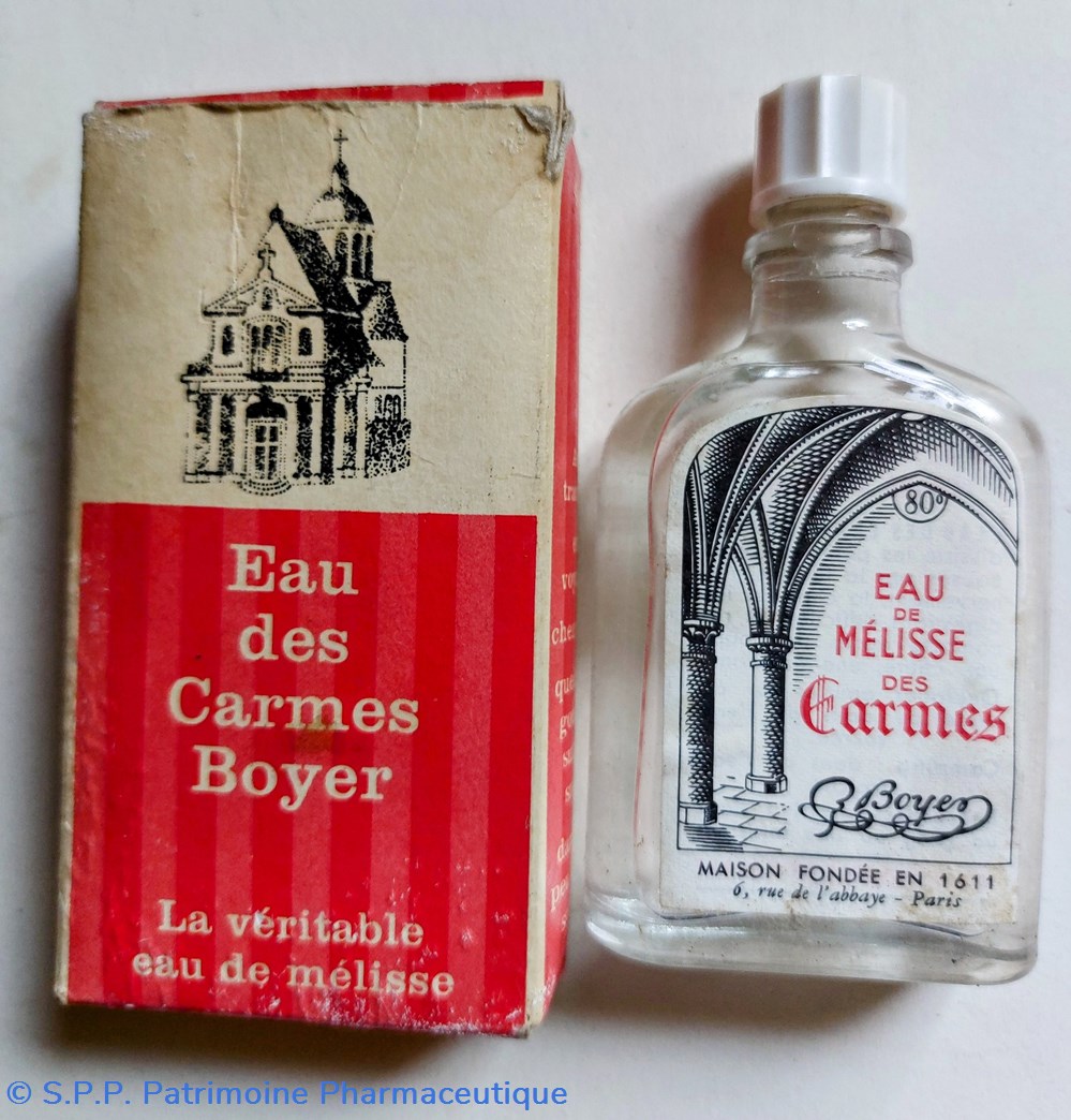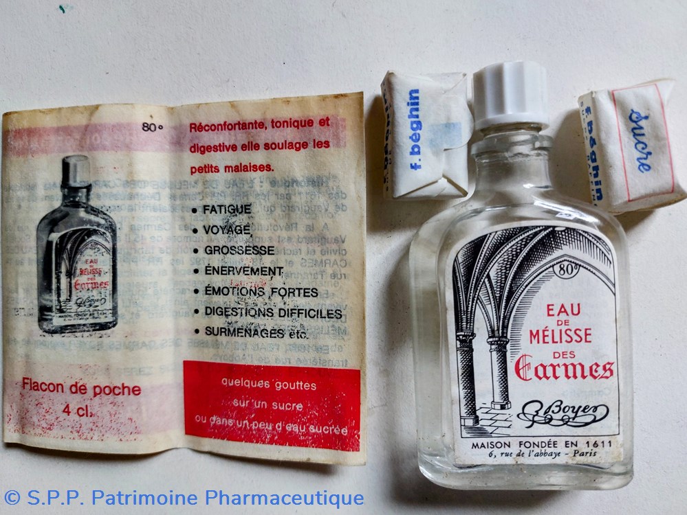 Flacon " de poche" de 4 cl d'Eau des CARMES BOYER " Véritable eau de Mélisse".