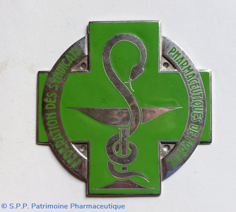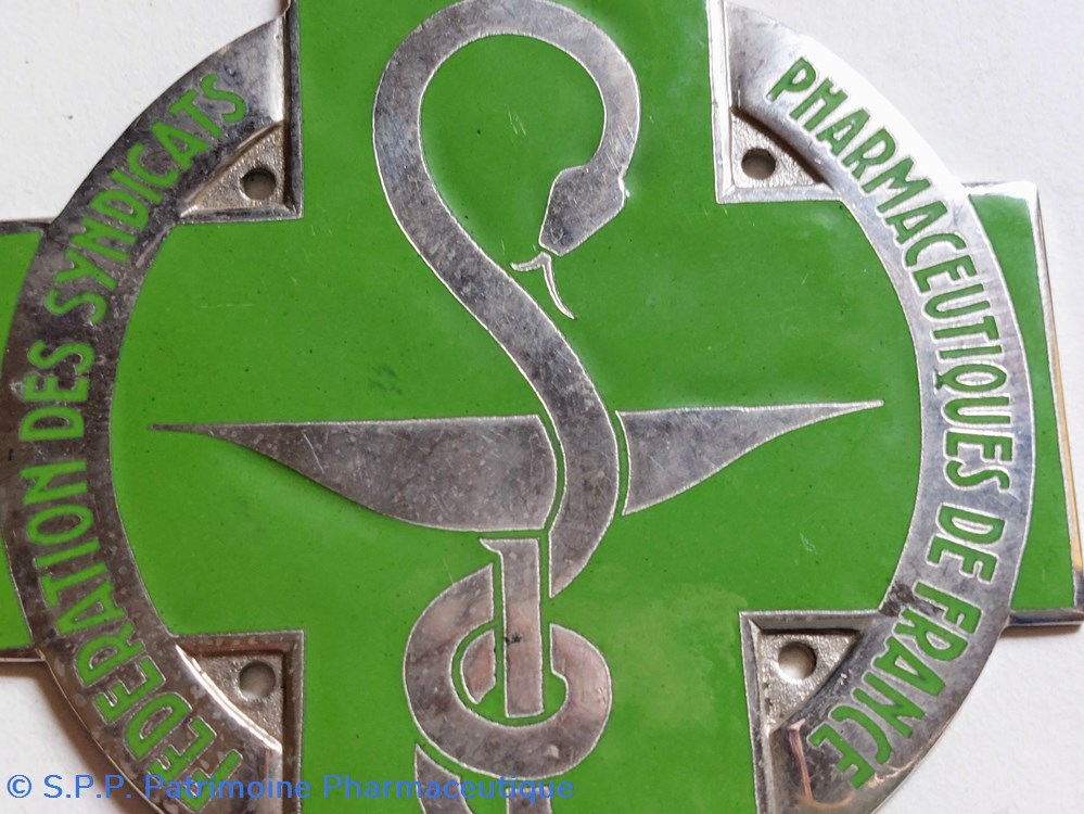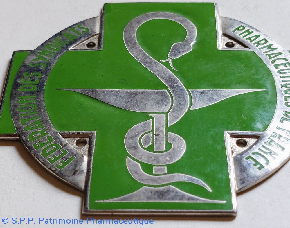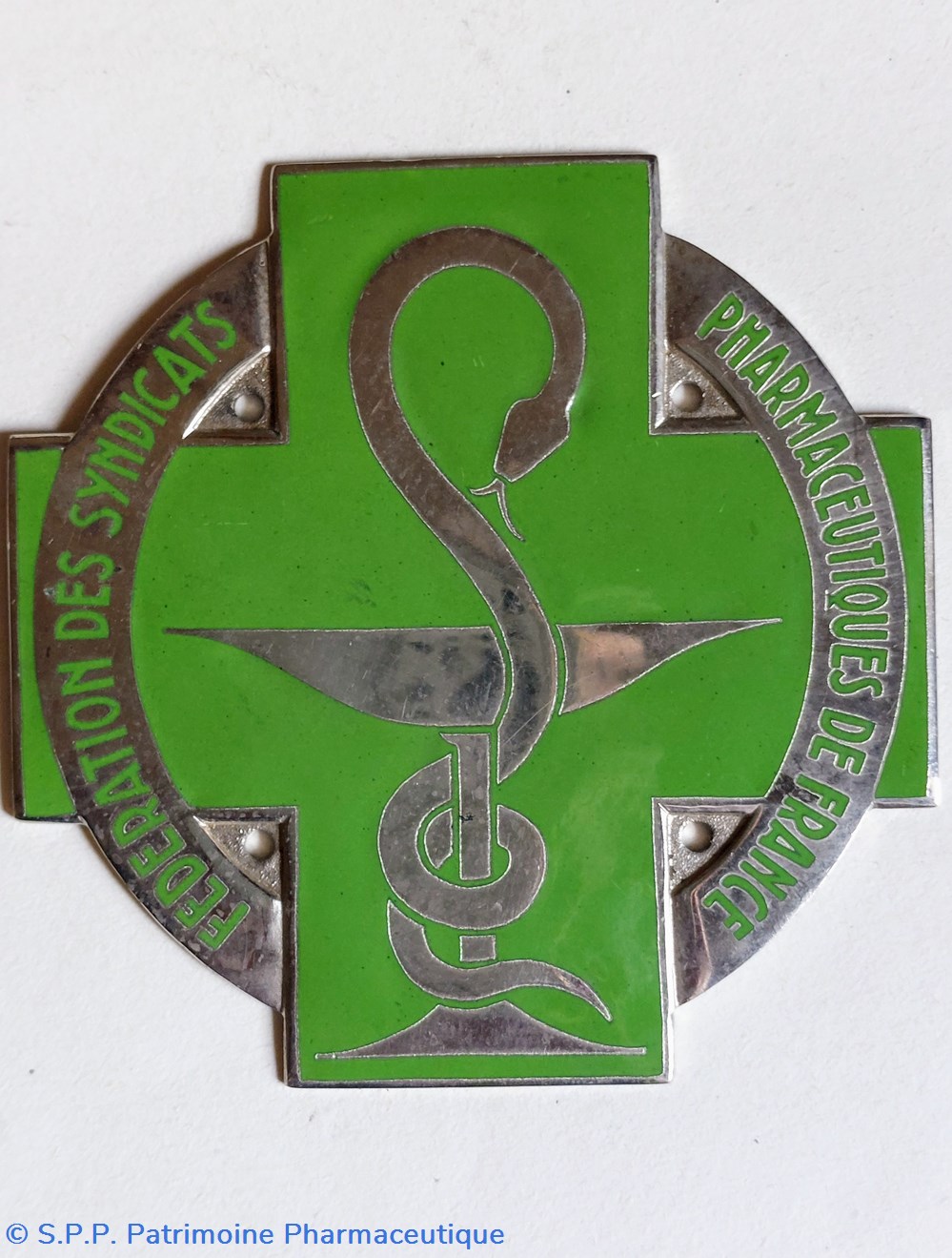 Plaque métallique de la FÉDÉRATION DES SYNDICATS PHARMACEUTIQUES DE FRANCE.