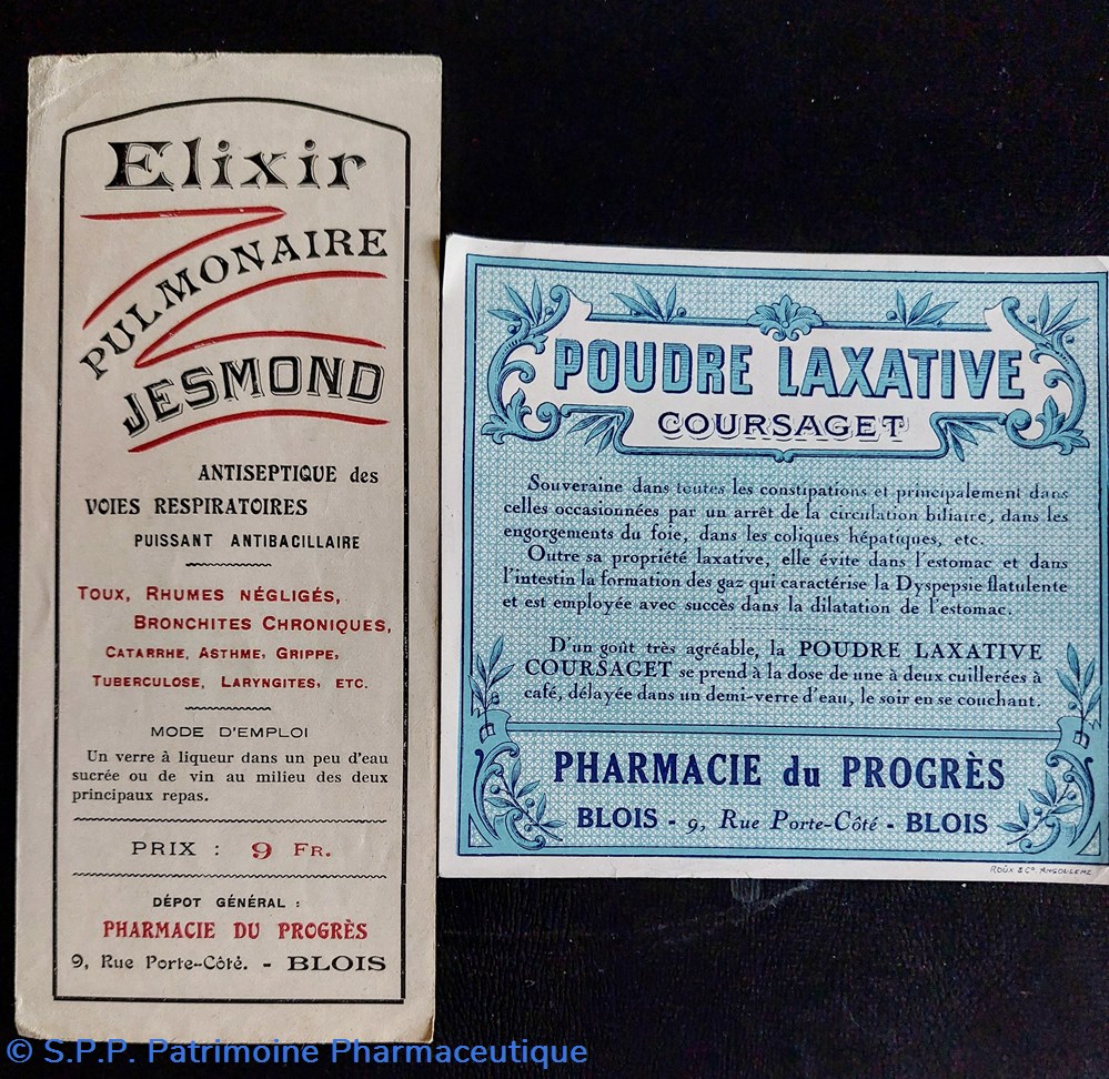 Phie du Progrès Blois / Étiquettes Élixir et laxatif