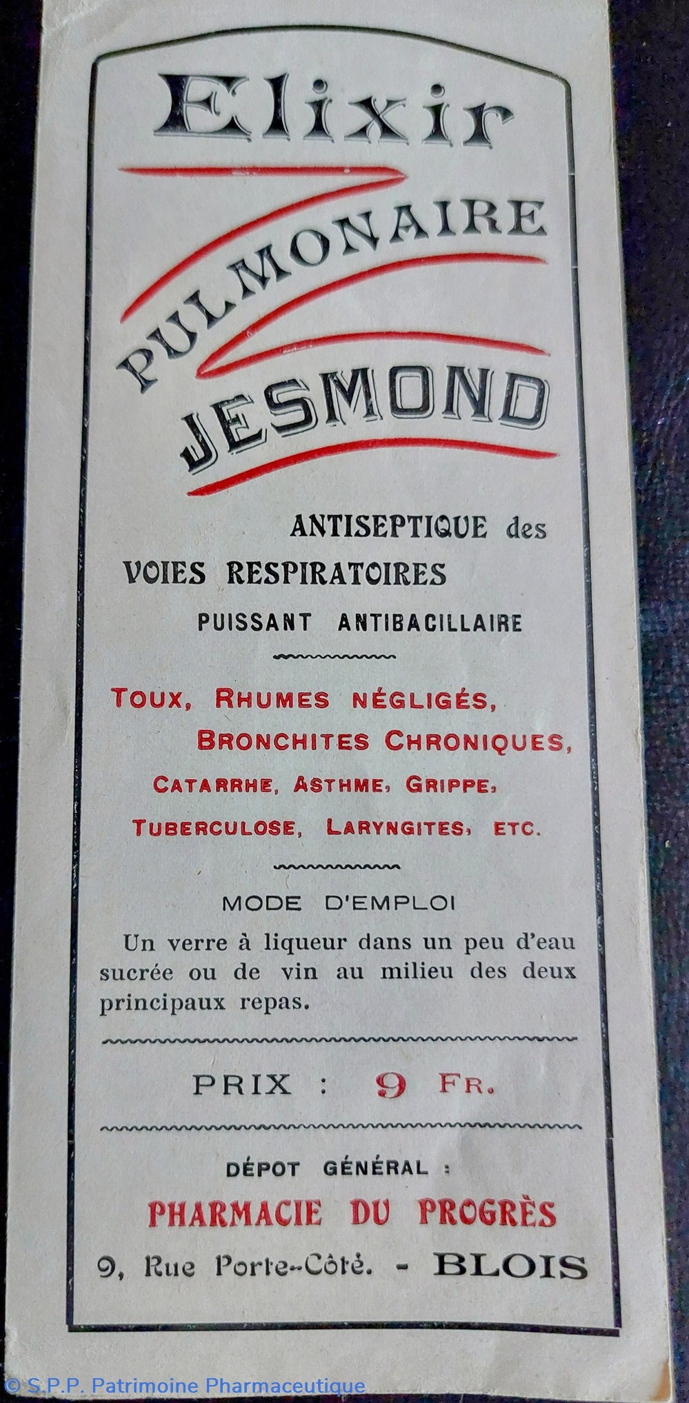 Élixir pulmonaire JESMOND Prix 9 Frs Antiseptique des voies respiratoires ( 16*7cm)