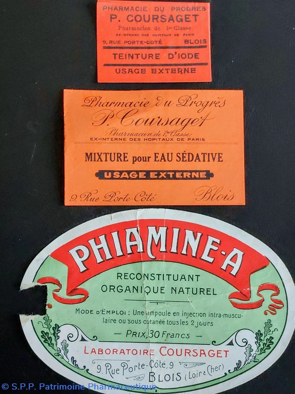 Étiquettes au nom de la Pharmacie COURSAGET à Blois