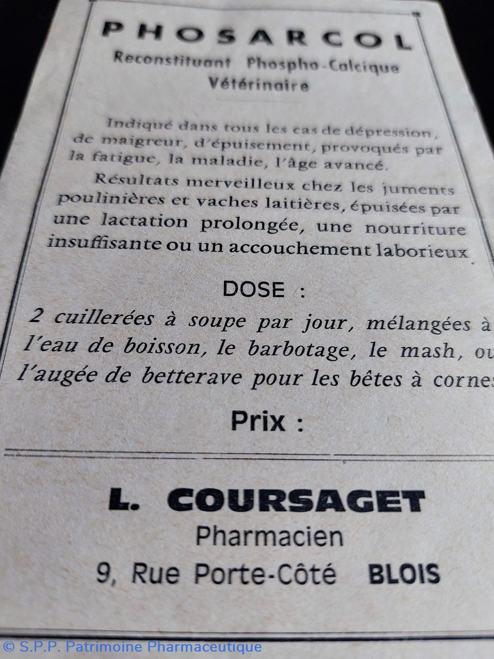 Étiquette de la Pharmacie COURSAGET à Blois pour un produit VÉTÉRINAIRE
