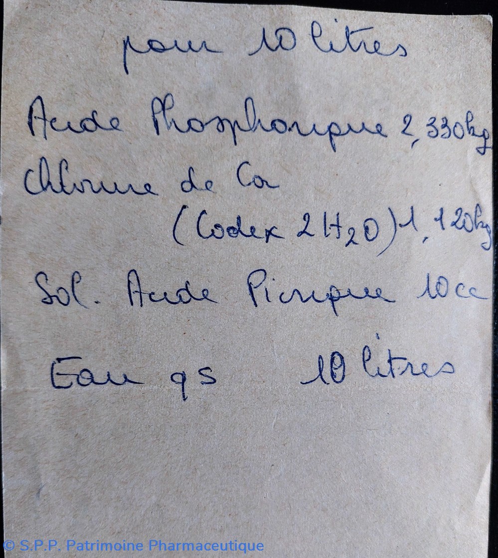 Au dos de l'étiquette Indications manuscrites pour confectionner le produit.